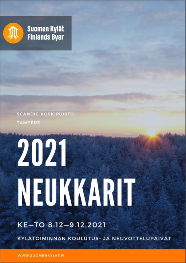 Suomen Kylät ry – Finlands Byar rf arrangerar höstens nationella utbildnings- och rådplägningsdagar för byaverksamheten, Kylätoiminnan valtakunnalliset koulutus- ja neuvottelupäivät, 8-9.12 på Hotell Scandic Tampere Koskipuisto, Koskikatu 5, 33100 Tammerfors. Dagarna är ämnade för alla byaombud (regionala, subregionala och kommunvisa), samt för de regionala byaföreningarnas ordföranden och andra förtroendemän och tjänstemän.