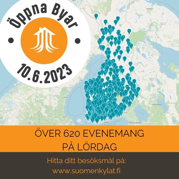 Öppna Byars dag ordnas kommande lördag den 10 juni. Öppna Byar är Finlands största publikevenemang med över 600 evenemang i hela landet. På evenemangsdagen kan du göra en lokal utflykt till byar och delta i olika evenemang! Byarna bjuder bl.a. på musikframträdanden, lokal mat, loppmarknader, hoppborgar, teaterföreställningar, ponnyridning och pannkakor.