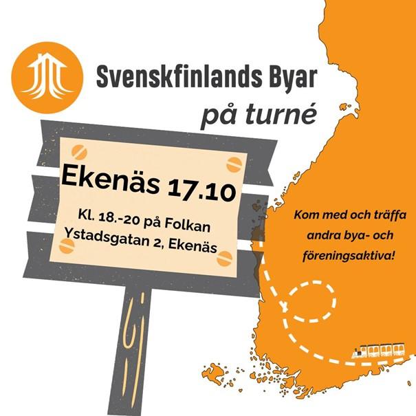 Tisdagen den 17 oktober är Svenskfinlands Byar på Folkan i Ekenäs kl. 18-20. Tillsammans med Nylands Byar och Folkhälsan bjuder vi på en kväll kring gemenskap och meningsfullt engagemang. Vi bjuder även på en liten kvällsbit. Ni kan anmäla hela er byaförening på en gång på adress https://www.bya.fi/sv/turne/.