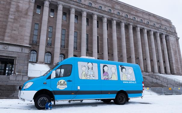 Finlands Byar rf föreslår att social- och hälsovårdsministeriet beviljar bidrag för mobila tjänster. Det här skedde i samband med att Mallu-bilen, visades upp vid riksdagshuset på vändagen.