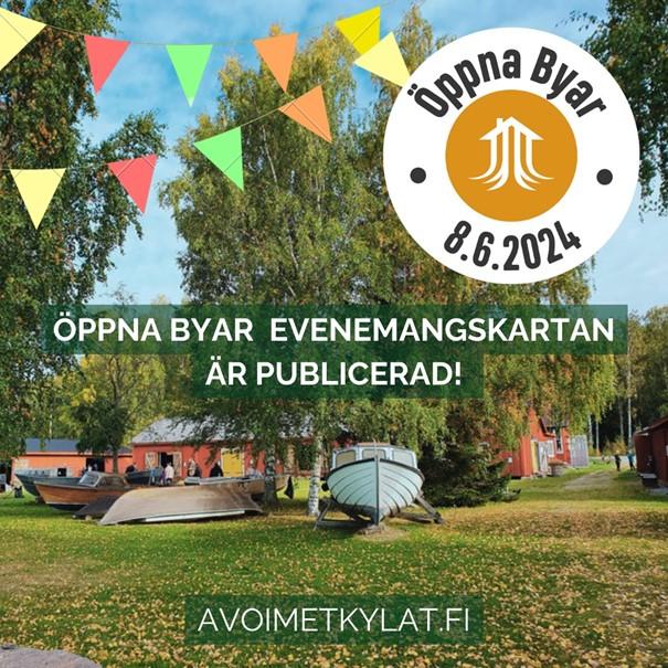 Vi bjuder in er by till den riksomfattande byafesten, som arrangeras för tionde gången den 8 juni 2024! På Öppna Byarnas dag öppnar byarna sina dörrar och arrangerar ett mångsidigt program. Öppna Byar samlar cirka 150 000 besökare till byarna, vilket gör det till Finlands största byaevenemang. Öppna Byar är en oförglömlig dag, fylld med lokal kultur, gemenskap och upplevelser.