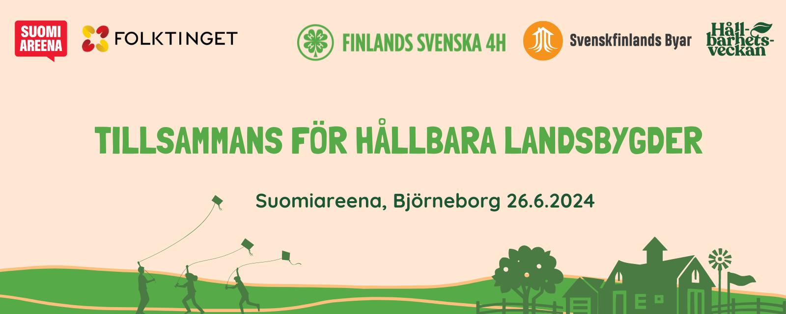Svenskfinlands Byar deltar tillsammans med Finlands svenska 4H på SuomiAreena 2024 i Björneborg onsdagen den 26 juni. Under det gemensamma temat "Tillsammans för hållbara landsbygder" betonar Fs4H vikten av ungas hållbara lärande inom 4H, arbetslivsfärdigheter och sysselsättning. Svenskfinlands Byar lyfter byagemenskapens roll för ett hållbart lokalsamhälle där alla är inkluderade.