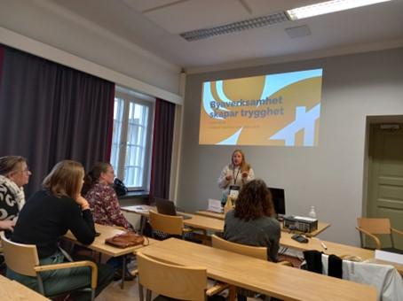 Nora Backlund under svenska workshopen som fokuserade på hur civilsamhället kan bidra till beredskapsfrågor. Foto: Roger Norrgård