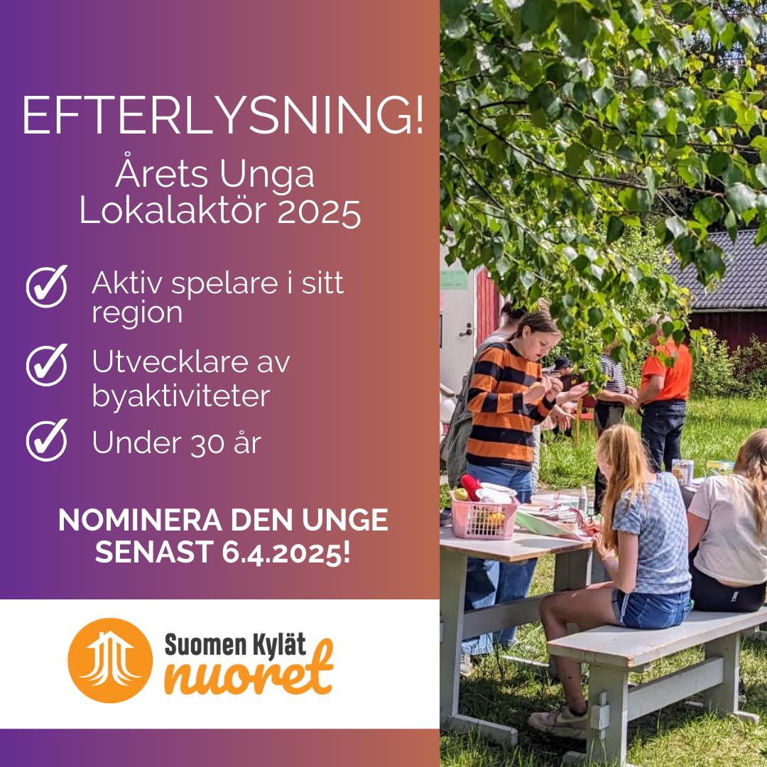 Nu har du chansen att lyfta fram deras insatser! Fundera ut en stark motivering och nominera din kandidat till Årets Unga Lokalaktör 2025.