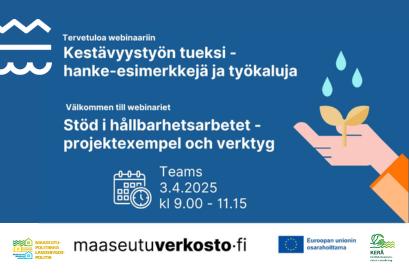 Hållbar utveckling berör oss alla, men det kan vara svårt att förstå sin egna roll. Landsbygdsnätverket och landsbygdspolitiska KERÄ-nätverket öppnar upp landsbygdens roll i kommande webbinarium. Det delas också på konkreta exempel hur man kan främja hållbarhet och vilka verktyg som kan tas till hjälp.