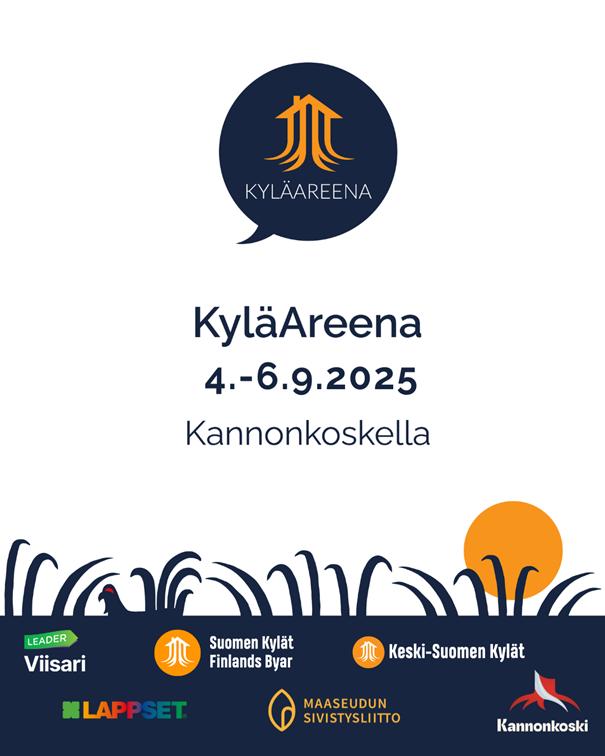KyläAreena hålls den 4-6 september i Kannonkoski, Mellersta Finland, på Piispala Ungdomscenter (Kurssitie 40, 43300 Kannonkoski).