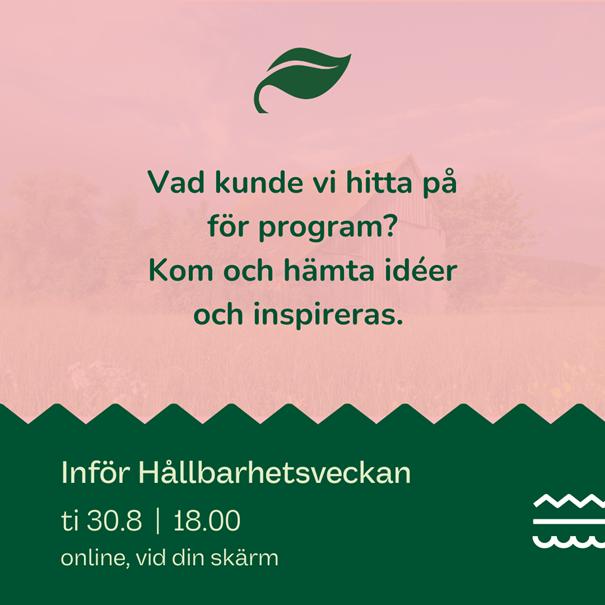 Hållbarhetsveckan är påkommande 26.9-2.10! Hurdant program blir det – vad hinner ännu planeras? Kom med på info– och idébytartillfälle på tisdag 30.8 kl.18-19, via Teams. Tillställningen riktar sig till alla som ordnar evenemang under Hållbarhetsveckan och till er som ännu funderar på saken. Infon ordnas i samarbete med Egentliga Finlands Byar, men även aktörer utanför Åboland är välkomna med.