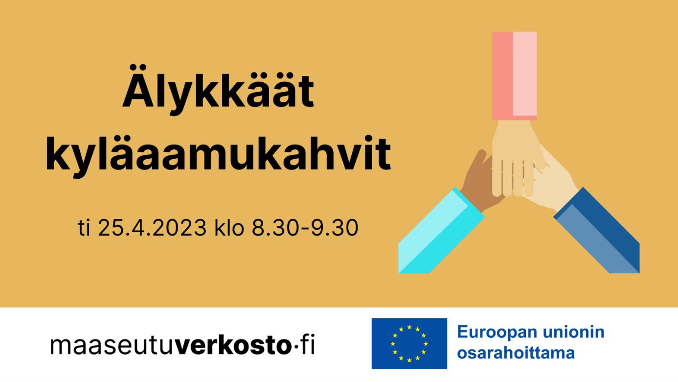 Smarta byar utvecklar innovativa lösningar på lokala utmaningar. Smarta byar är inte bara teknik, utan i centrum står människor. Oavsett om du är en erfaren byaaktör eller bara planerar sända in en ansökan, kom med på ett virtuellt byamorgonkaffe för att höra och diskutera möjligheterna med smarta byar. Evenemanget hålls 25.4 kl. 8.30-9.30.