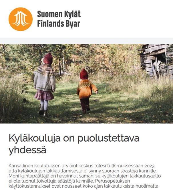 Finlands Byars Uutiskirje (september 2023) finns att läsas på webbplatsen uutiskirje.suomenkylat.fi.